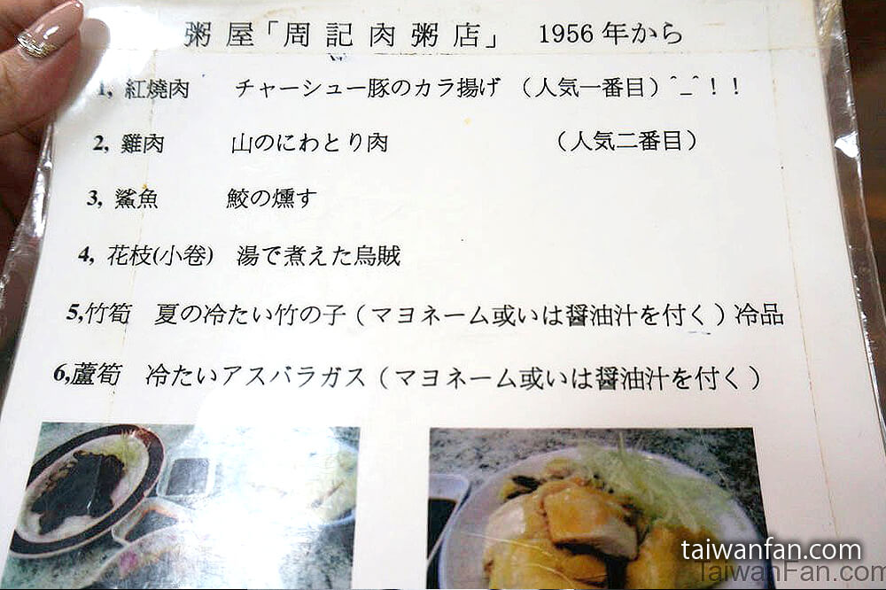 メニューには肉粥15元、紅焼肉30元とあるが、