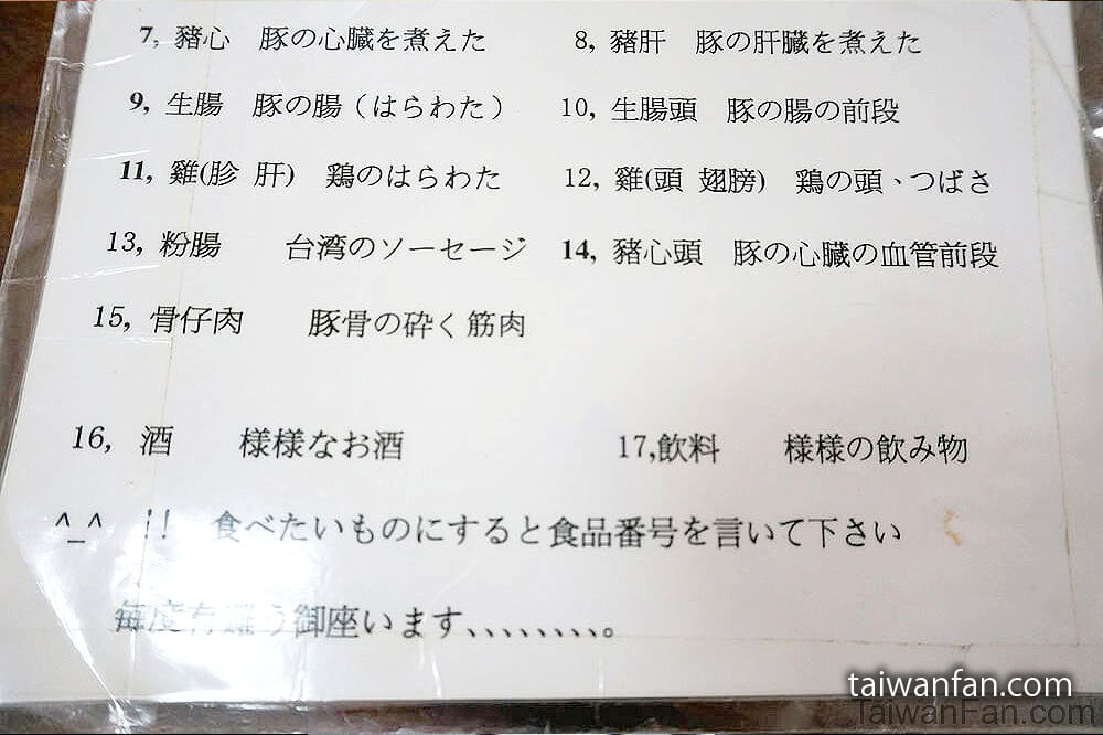 (肉類は量り売りで、メニュー表の金額は、1両あたりの単価として記載されているので、メニュー表の金額そのままの請求にはなりません)
